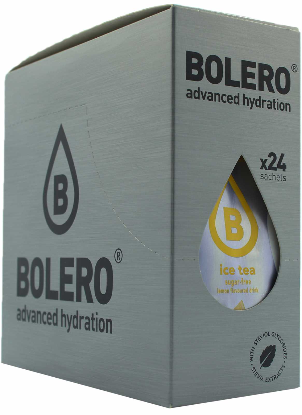 Bolero Drinks Tè freddo Bolero, ice tea, 24 Bustine 8 g, preparato polvere solubile per bevanda fresca in acqua. Rimanere idratati tutto il giorno è estremamente importante, in particolare per le persone attive come te. Se vuoi ravvivare l’acqua con una bontà naturale alla frutta, devi solo aggiungere una dose rinfrescante delle Bevande Bolero! Le Bevande Bolero sono disponibili in pratiche bustine che puoi portare con te ovunque. Questa bevanda in polvere è un modo eccellente per massimizzare il consumo di acqua nel corso della giornata, assicurando una completa idratazione al tuo corpo. Le Bevande Bolero possono essere aggiunte all’acqua del rubinetto, all’acqua minerale naturale o a quella frizzante – in ogni caso, avranno un sapore assolutamente fantastico! La cosa migliore delle Bevande Bolero è che non contengono zuccheri aggiunti, aromi, conservanti o coloranti! Ingredienti : acidificante, acido citrico, acido malico, fibra inulina, aromi Confezione da 24 bustine Contenuto bustina 3g Aroma ice tea