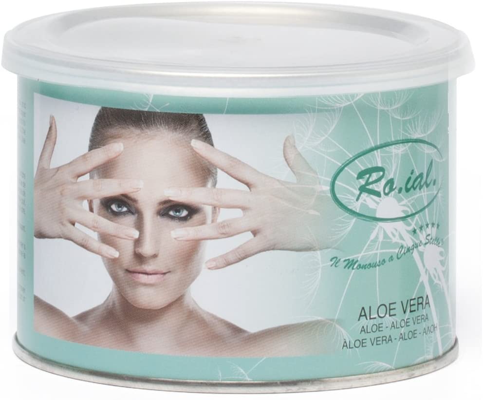 Ceretta depilazione 400ml Aloe Vera, professionale. La Cera all’Aloe Vera RO.IAL è una cera liposolubile che, grazie alle note proprietà curative dell’aloe, idrata, protegge e allevia la pelle. Per queste sue caratteristiche è altamente consigliata nei periodi estivi dove la pelle abbronzata può risultare secca e disidratata. E’ inoltre consigliata per trattamenti in zone e pelli molto sensibili. Fonde a bassissime temperature e non lascia alcuna traccia residua. Barattolo da 400 ml.MODALITÀ D’USOInserire il barattolo di cera depilatoria nell’apposito scaldacera dopo averlo aperto e riscardarlo per cira 45 sec. Il tempo di riscaldamento può variare a seconda della quantità residua nel barattolo e della potenza dello scaldacera. Mescolare con una spatola fino a che la cera assume la viscosità del miele e controllare che la temperatura della cera sia compatibile con la cute. Utilizzando la spatola stendicera applicare un sottile strato di cera secondo il senso di crescita dei peli. Appoggiare la striscia strappacera di tessuto e strappare nella direzione contraria alla crescita dei peli. La cera non sporca, eventuali residui possono essere rimossi con acqua. Dopo aver pulito applicare un latte o un olio dopocera idratante e lenitivo per prevenire l’arrossamento e rendere la pelle morbida e luminosa.Prodotto altamente professionaleProdotto in Italia