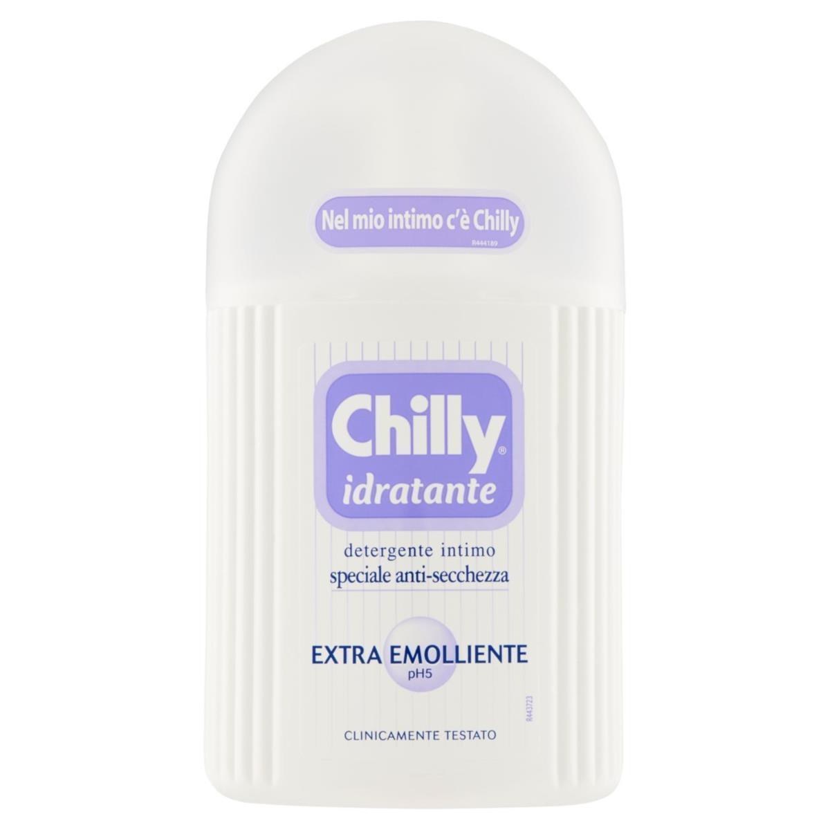 Cerchi idratazione? Prova Chilly Idratante. La sua nuova formula extra emolliente: – aumenta l’idratazione delle mucose del 23,5%**, ridonando morbidezza e nutrimento; – è potenziata con molecola antiodore, efficace contro i cattivi odori; – dona rapido sollievo intimo nel 100% dei casi; – è indicata durante i periodi di maggior secchezza intima (es: periodi di stress, menopausa, assunzione della pillola). E fuori casa prova le salviettine intime Chilly. Clinicamente testato Formula ipoallergenica* pH5 Approvato A.Gi.Co. *Formula studiata per minimizzare il rischio di allergie **Test eseguito su 29 donne.
