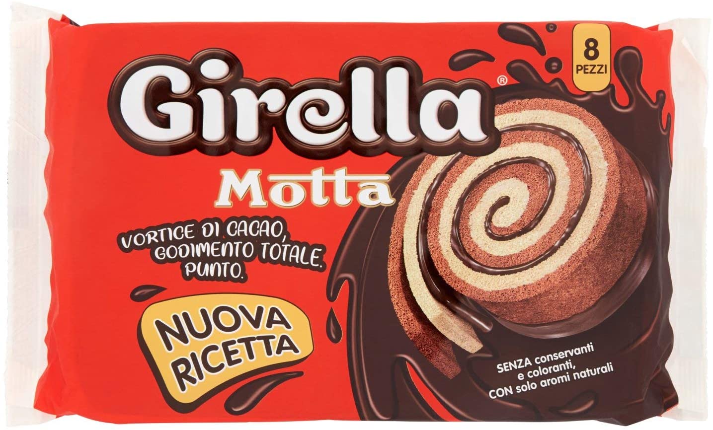 Motta Girella al Cacao, 8 merendine da 35g. Motta Girella Classica Al Cacao In Confezione Da 8 Girelle – 280 Grammi Totali. Assapora il gusto della classica Girella al cacao Motta, l’inimitabile! La mitica Girella Motta e’ il miglior vortice di cacao al mondo. Ingredienti: Farina di frumento, zucchero, uova, oli e grassi vegetali (palma, cocco, palmisti), sciroppo di glucosio – fruttosio, destrosio, cacao magro in polvere, cacao in polvere (2,3%),latte scremato in polvere, emulsionanti: mono-e digliceridi degli acidi grassi – lecitina di soia, alcool, pasta di nocciole, agenti lievitanti: difosfato disodico – carbonato acido di sodio- fosfato monocalcico, sale, conservanti: acido sorbico, aromi. Puo’ contenere tracce di altra frutta a guscio. Senza conservanti e coloranti, solo aromi naturali.