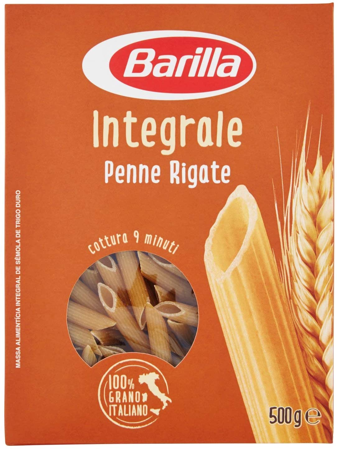 Barilla Pasta Penne Rigate Integrali, Pasta Corta di Semola Integrale di Grano Duro – 500 g. Il sapore più pieno e l’ottima consistenza sono frutto del metodo di macinazione delicata, che preserva tutta la bontà del grano, 100% italiano. Le Penne Rigate Integrali Barilla, dal diametro ridotto e fonte naturale di fibre, si caratterizzano per la loro proverbiale capacità di trattenere il condimento. Grazie alle piccole dimensioni, si amalgamano ottimamente al sugo, mentre le ricche scanalature esterne ne sanno accogliere con generosità gli ingredienti. Barilla: Un’azienda italiana di famiglia che coltiva la passione per la pasta dal 1877. I nostri sughi, pasta e cereali sono gustosi, sicuri e contribuiscono a una dieta equilibrata sulla tua tavola. Lasciati sorprendere dall’inconfondibile bontà della nuova pasta Integrale Barilla! Ingredienti: Semola integrale di grano duro, acqua, tracce di soia.