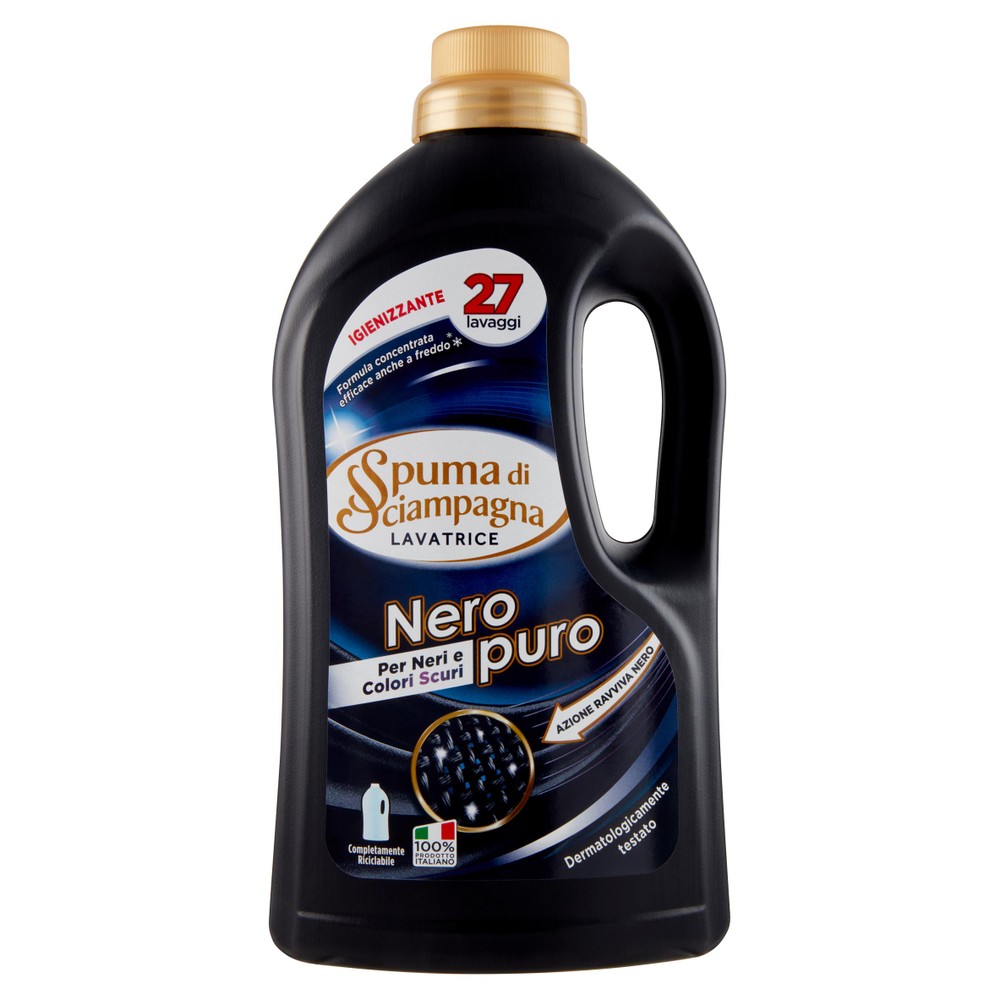 Spuma di Sciampagna, detersivo lavatrice nero puro, lavaggi 27. Detersivo specifico per il bucato in lavatrice, efficace contro le macchie già a basse temperature. La sua speciale formula, prendendosi cura del nero e dei colori scuri, mantiene, ad ogni lavaggio, intensità e brillantezza, evitando lo sbiadimento dei tessuti, mentre la sua avvolgente fragranza garantisce un bucato sempre fresco e piacevolmente profumato. Adatto su capi neri e scuriInformazioni sul prodotto:Lavaggio in lavatrice, per 4/5 kg di biancheria, con sporco normale: utilizzare 65 ml di prodotto. Lavaggio a mano: diluire 50 ml di prodotto in 10 litri di acqua. Nel lavaggio di tessuti sintetici, per evitare problemi di schiuma, ridurre le dosi di 1/3; non usare su lana e seta. Evitare il contatto diretto e prolungato con i tessuti. Tenere fuori dalla portata dei bambini. Proteggere gli occhi e il viso: provoca gravi lesioni oculari. In caso di contatto con gli occhi, sciacquare accuratamente per parecchi minuti, togliendo le eventuali lenti a contatto. Non ingerire. In caso di ingestione consultare immediatamente un medico, tenendo a disposizione il contenitore o l’etichetta del prodotto.Composizione:Tra 5 e 15%: Tensioattivi ionici, Tensioattivi anionici; < 5%: Sapone; Altri componenti: Enzimi, Profumo, Methylisothiazolinone, Benzisothiazolinone, 2-Bromo-2Nitropropane-1,3-Diol, Benzyl Benzoate, Butylphenyl Methylpropional, Cinnamic Alcohol, Citronellol, Limonene.